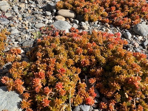 花壇の合間には、北端にモリムラマンネングサとうセダムの仲間、ほかはレイタータイムを植えました。