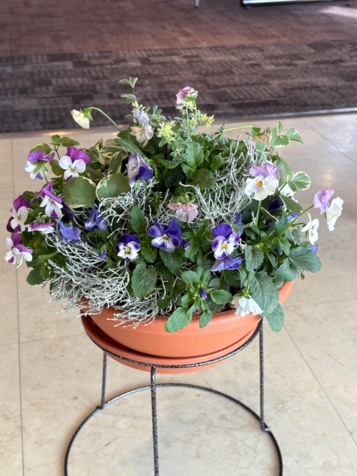 寄せ植えの進化バージョン、花束にして植えるビオラとパンジーのギャザリングを初めてやってみました。しかし、思うようにお花が咲かない。液肥も始めてみましたが、、田舎ではよい苗がない上、ほしい色の苗は売れ残りも様なものしかないので、そこからダメなのか。研究が必要です。