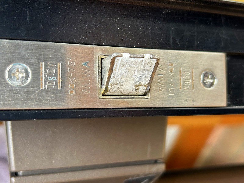 鍵のほうを見てみると三角に飛び出しているラッチボルトに擦り傷があり動きも悪い。これの取替で修理ができるのではないか・・・・とりあえずメーカへ問い合わせをいたします。