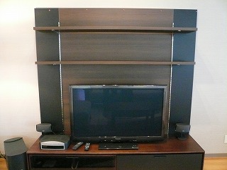 テレビボードのバックにあるパネルは、NCCグループ会社 CC・ジー㈱で製造している、