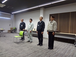 のあと、腰を30度に曲げて礼をする。 発声も礼も、4人揃っていないといけません。