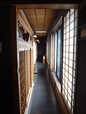 本日は、団体さんの予約があるとかで、2階に通されました。靴を脱ぎ階段を上がると障子戸があり、その戸を開けると2階の廊下になります。廊下をLの字に歩きワクワクする造りの店内。