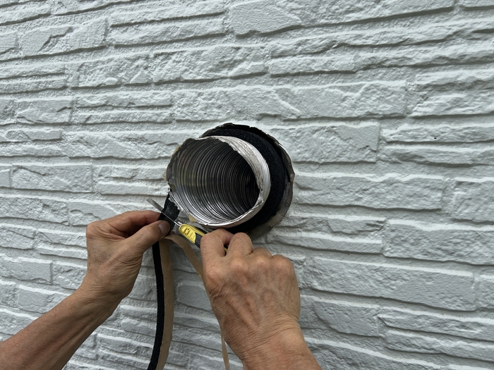 外壁小口を防水テープをしっかり留め、コーキングを打ちます。