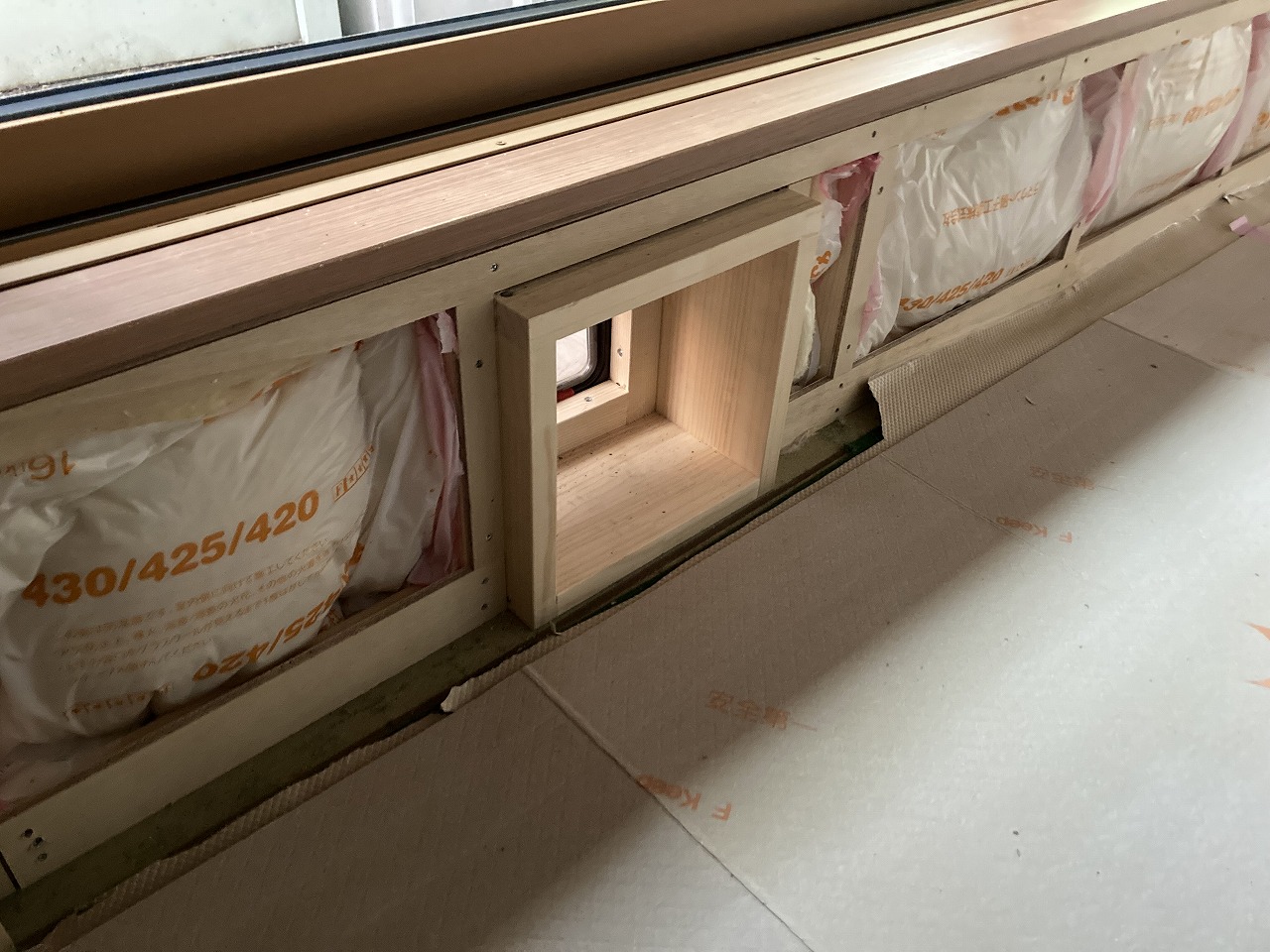 新しいサッシはペアガラスで加工ができないため、壁を開口しキャットドアを付けることにしました。