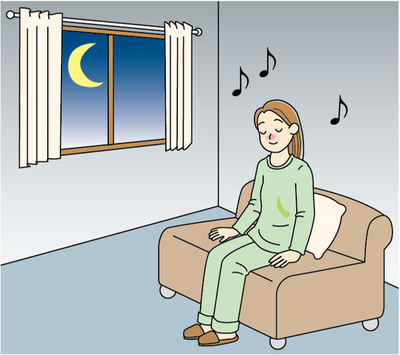 部屋の明かりは暗めに調節、ノンカフェインのお茶でも飲みながらゆっくり過ごし、眠気を感じたら寝室へ。
