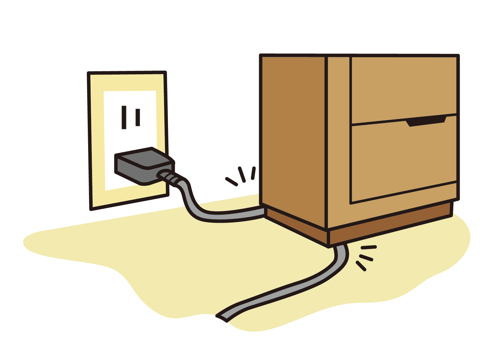 コードを強く引っ張ったり、家具や椅子で踏んだりして無理な力を加えると、事故につながる恐れがあるのでご注意を。
