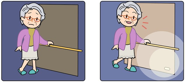 ●床に物を置かず、整理整頓を心がける。また、夜間や夕方には足元がよく見えるよう、照明を明るくしたりセンサー付き照明を活用する。