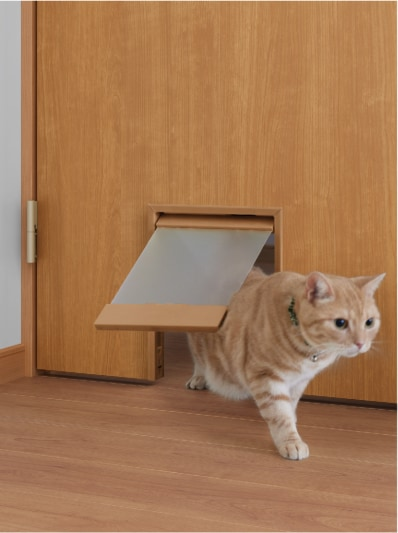 いつもペットのために部屋の扉を開閉めしているなら、ペットドアを考えて。これはドアや壁に設置する猫や小型犬のための小さなくぐり戸で、自由な行き来を可能にします。ドア開閉の回数が減ることで、冷暖房の効率もUPします。