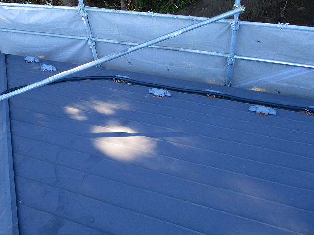 屋根 ガルバリウム鋼板。色褪せとチョーキング(白亜化)現象がおきていました。